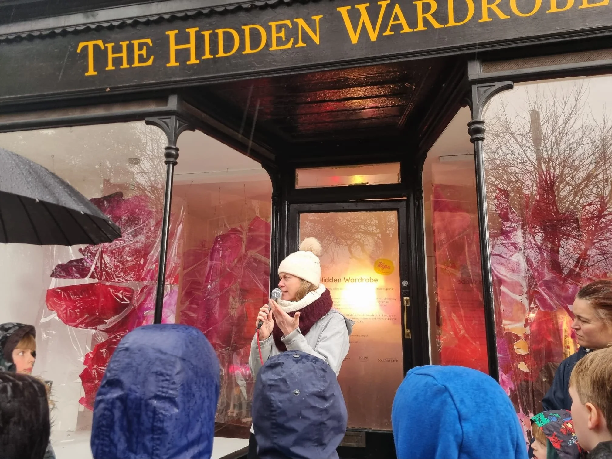 The weather was horrendous, especially for an event that was predominantly outdoors. Nevertheless there was a good turnout, about 30 people who included friends, the art community and even a family who found it through eventbrite. The children loved the chance to go inside the installation, made even better by the fact they had permission to touch the exhibit. (I would have felt more precious about this earlier in December, but the show has nearly had it’s run and children really want to use all their senses too engage).